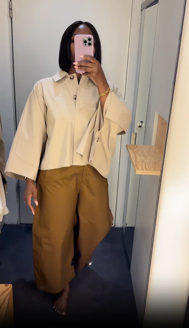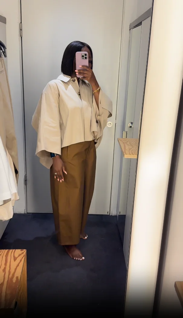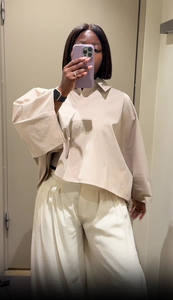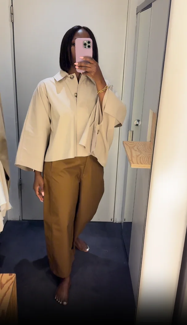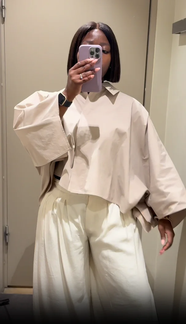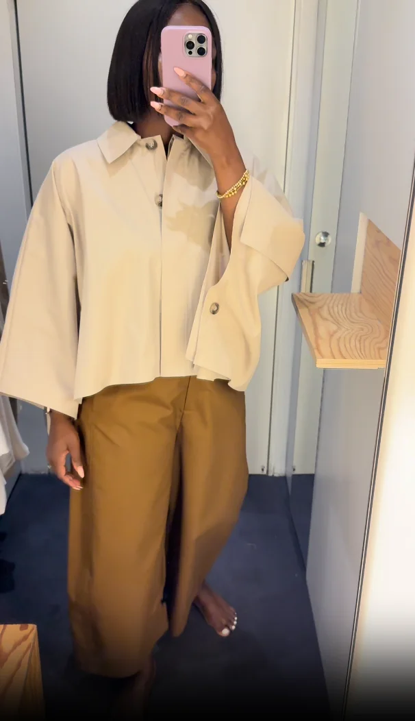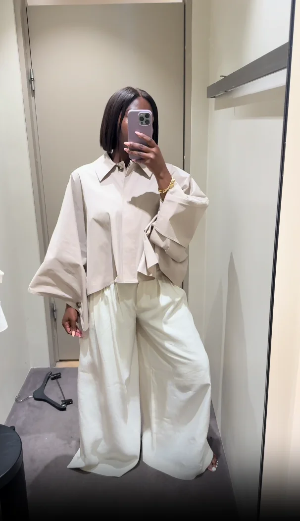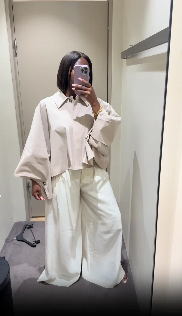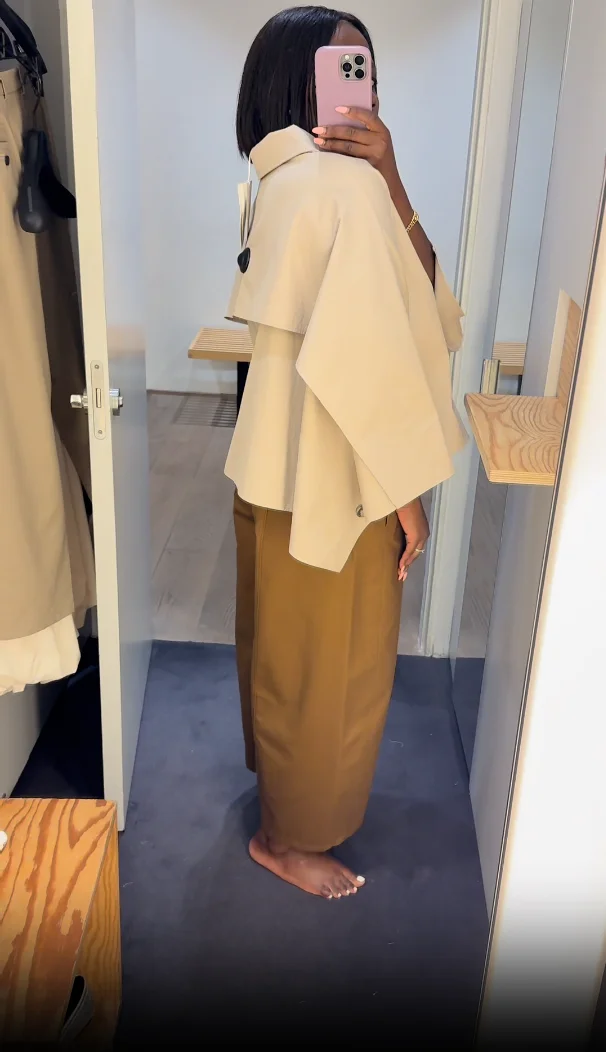 The Farella Windbreaker is a masterclass in modern sophistication and timeless design. Crafted in light beige, off-white, or dark beige, its structured turn-down collar and contrasting dark buttons lend a classic trench coat allure. Wide bell sleeves with an elegant clasp detail create a batwing-inspired silhouette, combining movement with architectural refinement. Perfectly tailored yet breezy, this coat is a statement of understated elegance for city streets.