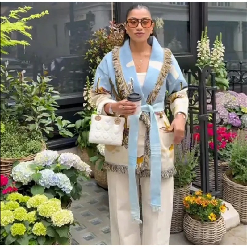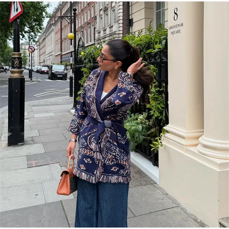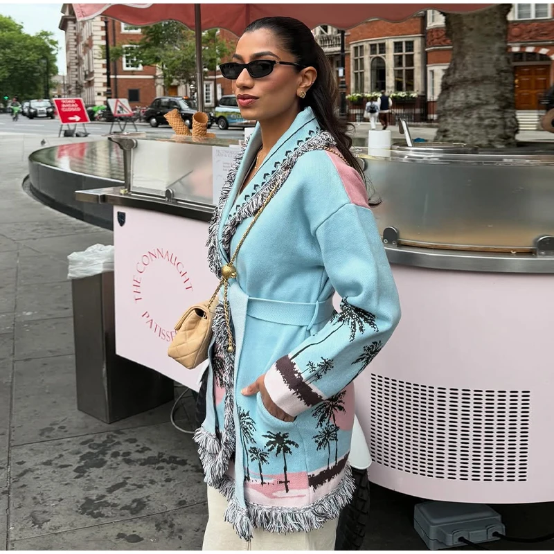 The Seralyn Cardigan – Vintage Pattern Knit with Lace-Up Front